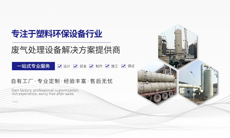 酸性廢氣由洗滌塔底部進(jìn)入,pp洗滌塔內(nèi)水泵將水箱內(nèi)堿性液體抽到洗滌塔頂部噴嘴,噴嘴噴成霧狀或雨滴狀。氣液逆流酸性廢氣和堿性液體在填料層充分反應(yīng),酸堿中和之后洗滌塔中的填料層可以分散氣流和水流,增加接觸面積,使酸性廢氣和堿性液體充分接觸,提高處理效果。
